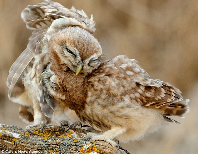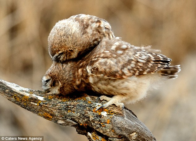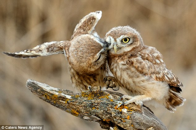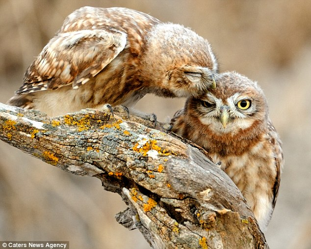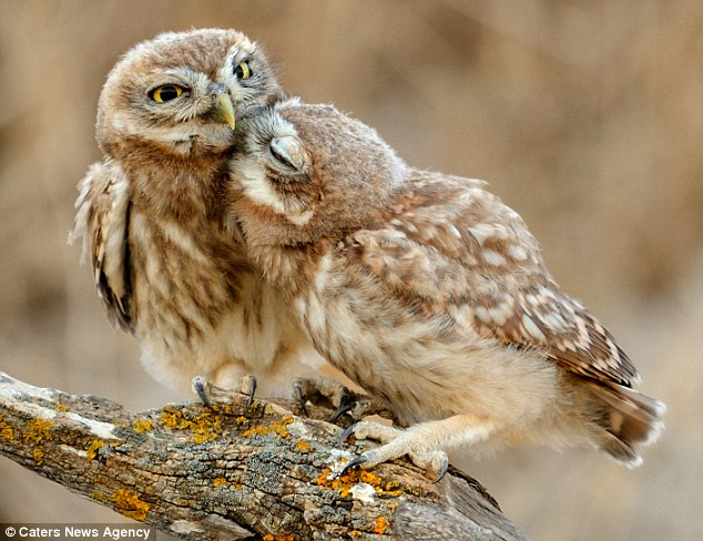 Two young owls in northern Israel have recently captured the hearts of many with their sweet, affectionate display on a tree branch.