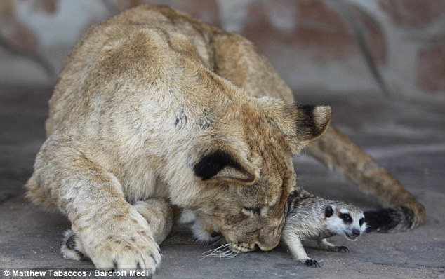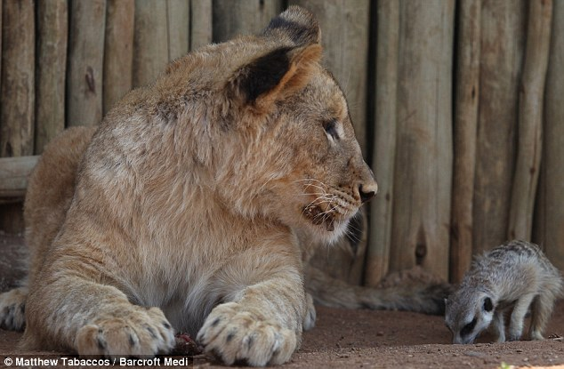 It may sound straight out of The Lion King, but this unique friendship between a lion cub and a meerkat is real.