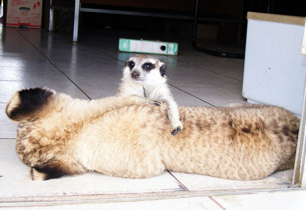 Despite the typical aggressive nature of meerkats, Bob was instantly friendly with Zinzi, showing an uncommon gentleness.