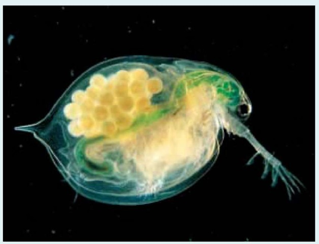 This planktonic organism plays a key role in aquatic ecosystems as a primary consumer, feeding on algae and microorganisms. Additionally, it supports the food web as a vital resource for fish and other aquatic species.