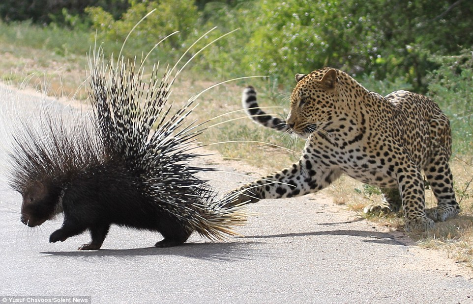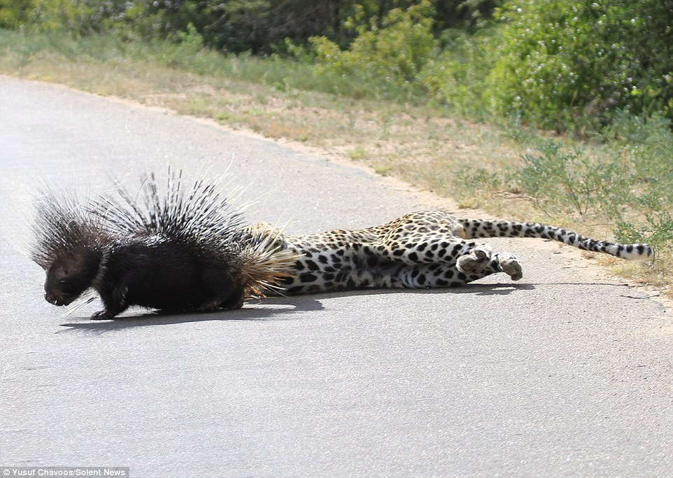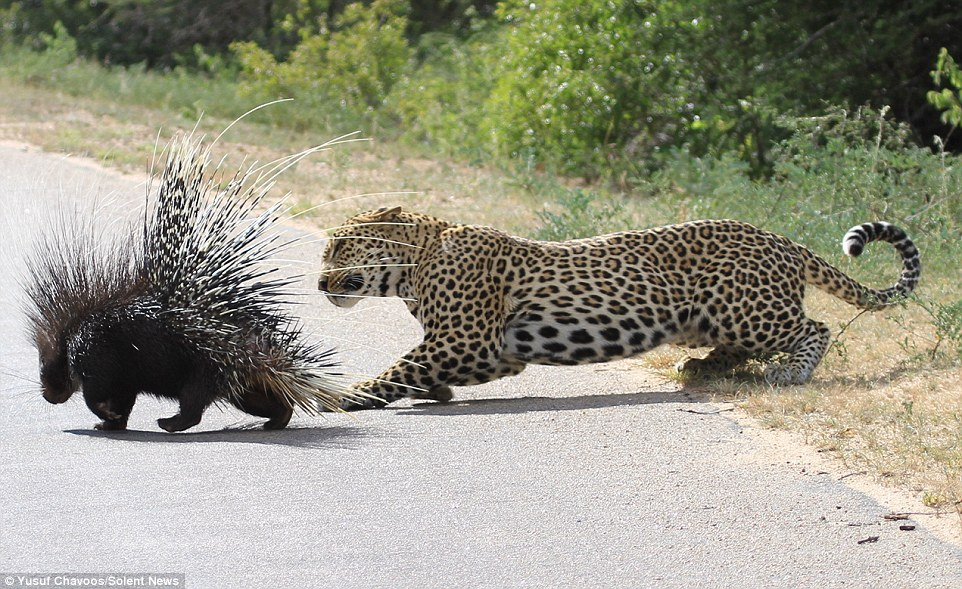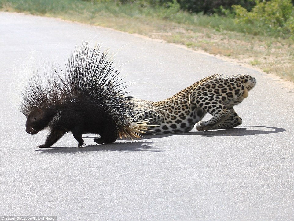 One eyewitness, Yusuf Chavoos, a 42-year-old optometrist from Johannesburg, happened to be driving through the park when he encountered the leopard and porcupine emerging from the trees.