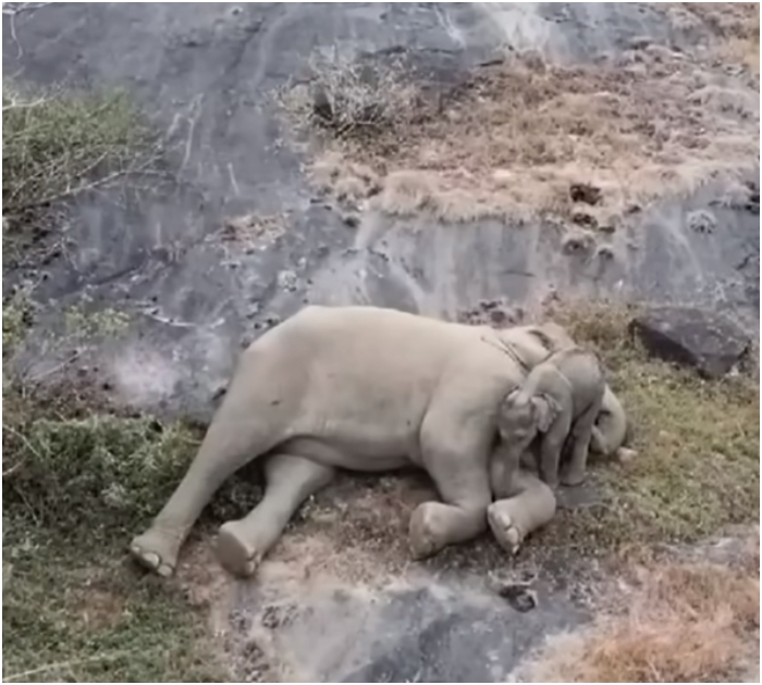 Exhausted after days of searching for her calf, the mother elephant was likely catching up on essential rest, easing any worries and shedding light on elephant behavior.