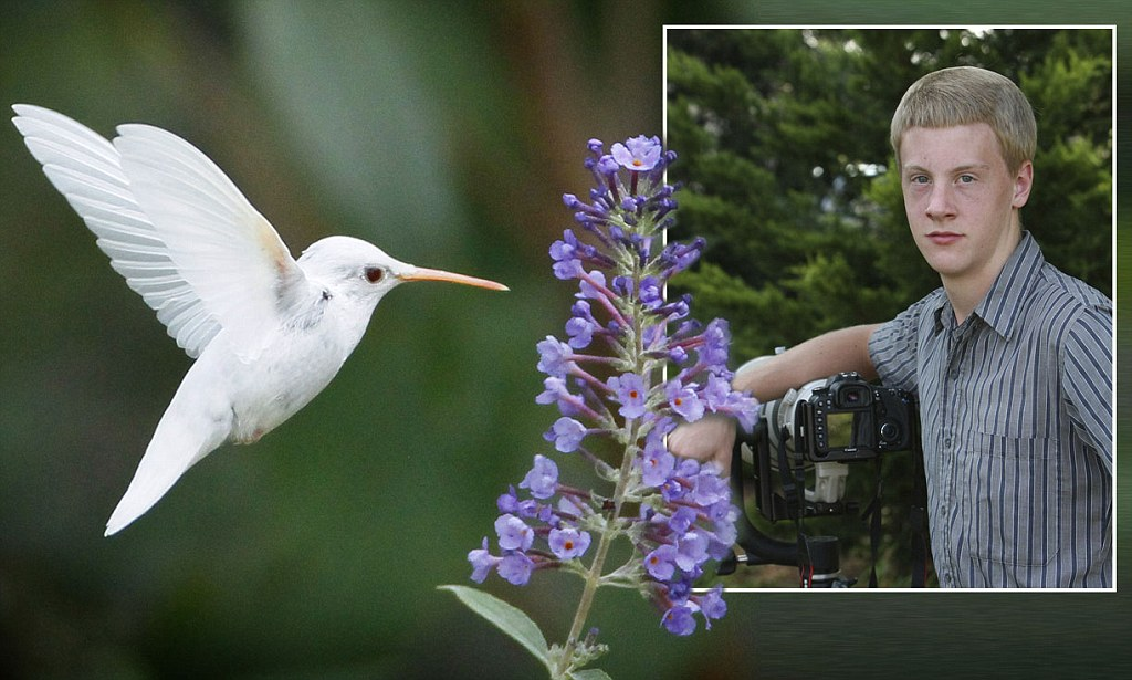 Fifteen-year-old Marlin Shank recently captured stunning images of a rare albino Ruby-throated Hummingbird in a park in Staunton, Virginia.